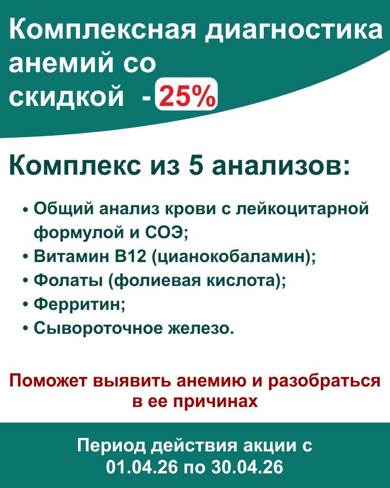 Комплексная диагностика анемий со скидкой - 25 %