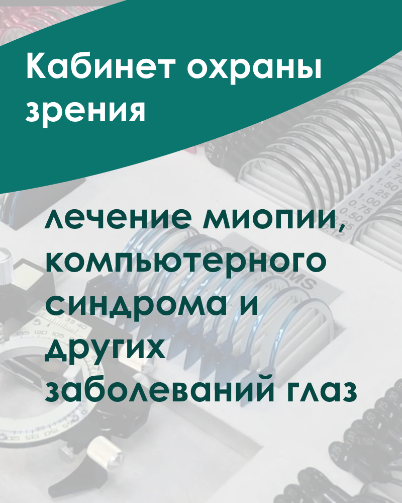 Кабинет охраны зрения ждет маленьких и взрослых пациентов для лечения миопии, компьютерного синдрома и других заболеваний глаз на аппаратах:Визотроник, Макдэл (лазер), макулостимулятор, магнит.Впереди каникулы и отпуска - появляется время для улучшения своего здоровья!